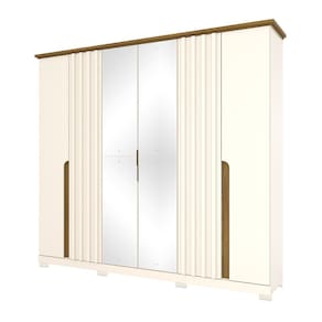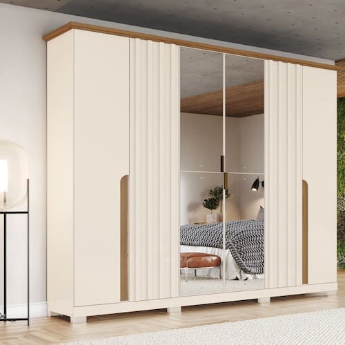 Guarda Roupa Casal Ripado com Espelho 6 Portas com Pés Napoli Henn - Off White