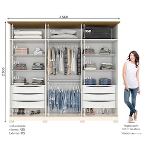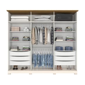 O Roupeiro Napoli 6 Portas é sinônimo de modernidade, elegância e praticidade no dia a dia, apresenta um design moderno e harmônico. produzido em MDP. Conta com 6 gavetas com corrediças telescópicas, Gavetas com usinagem para pega, 02 portas com apliques ripados, Portas com usinagem para pega, Cabideiro e calceiro em alumínio, Puxadores em alumínio com acabamento bronze, Pés em ABS e Frente das gavetas, tampo sobre as gavetas e ripas laterais na tonalidade da caixa. É ideal para agregar bom gosto ao ambiente e organização a sua rotina!