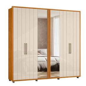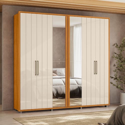 Guarda Roupa Casal Ripado em MDF com Espelhos 6 Portas e Pés Miro Madetec - Off White