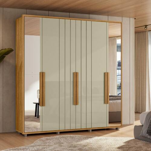 O Guarda Roupa Casal Ripado em MDF com Espelhos 6 Portas e Pés Portinari Madetec une sofisticação e funcionalidade. Com design moderno, suas 6 portas apresentam detalhes ripados e puxadores cava em MDF. Conta com estrutura 100 em MDF de 15mm e 25mm, cabideiros retráteis em alumínio com pistão a gás, dobradiças metálicas de 35mm com amortecimento e pés em poliestireno. Possui 4 gavetas espaçosas com corrediças telescópicas e 8 nichos, garantindo excelente organização em um espaço de 2,30m de largura.