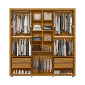 Características: 4 Espelhos 1139x329mm 4 Gavetas com corrediças telescópicas 8 Nichos 6 Portas Cabideiros retrateis em alumínio com pistão a gás Dobradiças de 35mm com sistema de amortecimento Estrutura 100 MDF 15mm e 25mm Fixação com minifix e parafusos Pés em poliestireno Peso total suportado 118kg Portas com dobradiças metálicas com sistema de amortecimento Puxadores em MDF Revestimento em pintura UV