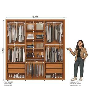 Dimensões: Altura: 240 cm Largura: 230 cm Profundidade: 56 cm Peso: 220,40 kg