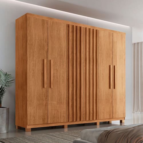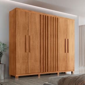 Se você busca estilo, funcionalidade e organização em um só lugar, o Guarda-Roupa Roma 6 Portas é a resposta para os seus desejos! Moderno e seguindo as últimas tendências de design ripado, este guarda-roupa é a combinação perfeita de elegância e praticidade. Ele é projetado com uma boa capacidade de armazenamento e uma distribuição interna pensada para a máxima organização com prateleiras, cabideiros e gavetas. Transforme seu espaço, encontre tranquilidade e estilo no seu dia a dia!