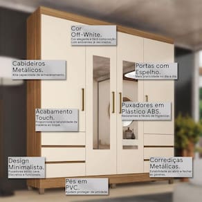Guarda Roupa Casal Roma 4 Portas com Espelho Amendola Off White - Demobile