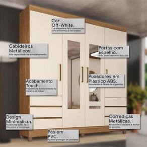 Guarda Roupa Casal Roma Ambiente 4 Portas com Espelho Amendola Off White - Demobile
