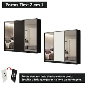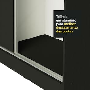 - 3 portas de correr, apresentando sistema anti-descarrilhamento, sendo uma (1) de madeira e duas (2) com espelhos