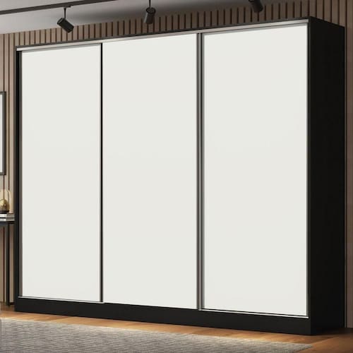 O acabamento da estrutura externa é preto e a parte interna é branca. As portas possuem pintura preta em um lado e branca no outro. Assim, você pode fazer a escolha no momento da montagem. O processo é feito em Pintura Poliéster de alta resistência que confere maior proteção e durabilidade ao móvel.
