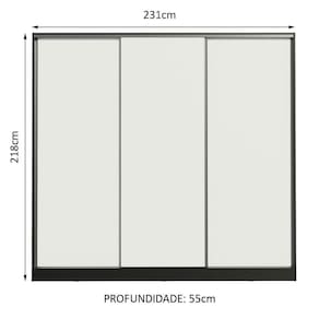 Medidas totais do armário: 218cm de altura x 231cm de largura x 55cm de profundidade.