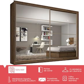 O(a) Guarda-Roupa Casal Royale Plus 2 Portas 6 Gavetas Espelhado Brauna - Pnr Móveis é produzido em MDF na escala de brilho Semi-Brilho, e possui um grau de dificuldade de montagem: Médio.