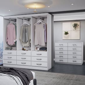 O(a) Guarda-Roupa Casal Ruby 6 Portas 9 Gavetas com Cômoda 10 Gavetas Branco - Loja é produzido em MDP na escala de brilho Fosco, e possui um grau de dificuldade de montagem: Médio.