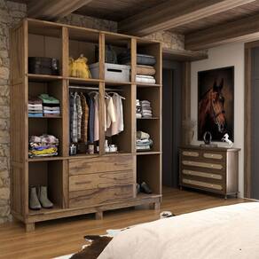 O(a) Guarda-Roupa Casal Rústico Madeira Maciça 10 Portas 3 Gavetas com Espelho e Pés Castanho - Loja é produzido em Madeira Maciça e Pinus na escala de brilho Alto Brilho, e possui um grau de dificuldade de montagem: Médio.