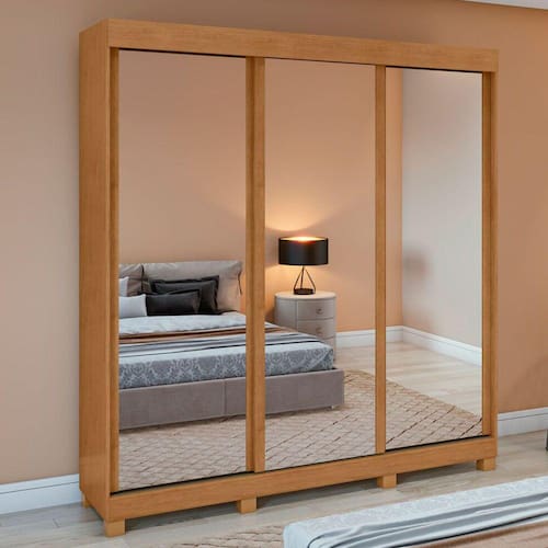 Guarda-Roupa Casal Saion Plus 3 Portas Com Espelho e Pés Moveis Lopas - Marrom