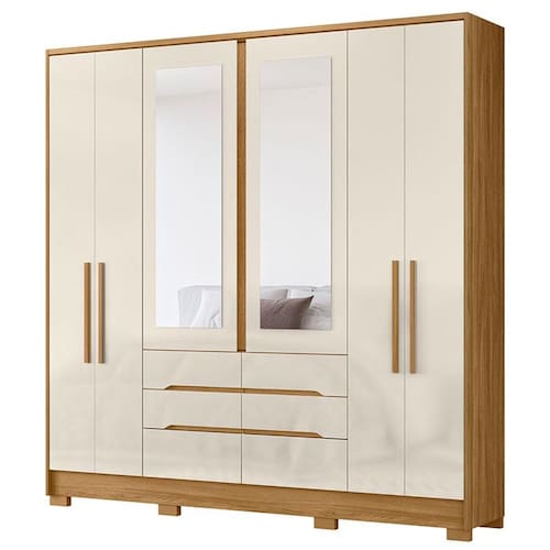 Guarda Roupa Casal San Francisco 6 Portas Freijó Off White com Espelho - Moval