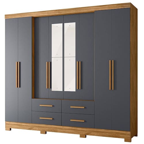 Guarda Roupa Casal San Lorenzo 8 Portas e 4 Gavetas com Espelho - Moval
