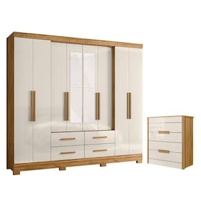 Organize seu quarto com elegância e o melhor custo benefício do mercado. Apresentamos o Guarda Roupa Casal San Lorenzo e Cômoda Dhara fabricados pela Moval. Guarda Roupa com 08 portas, portas laterais avançadas, 04 gavetas com corrediças telescópicas, puxadores na cor bronze, cabideiro e calceiros em alumínio para melhor organização interna e pés em PVC. A cômoda possui 04 gavetas com corrediças telescópicas, moldura lateral de 25mm, tampo de 15mm, puxadores em MDF, pés em PVC e um design moderno que combina com qualquer decoração. Fabricado com materiais de alta qualidade que garante resistência e durabilidade ao produto. Confira mais detalhes e aproveite!