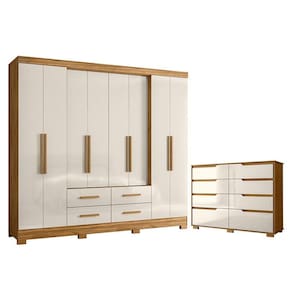 Organize seu quarto com elegância e o melhor custo benefício do mercado. Apresentamos o Guarda Roupa Casal San Lorenzo e Cômoda Georgia fabricados pela Moval. Guarda Roupa com 08 portas, portas laterais avançadas, 04 gavetas com corrediças telescópicas, puxadores na cor bronze, cabideiro e calceiros em alumínio para melhor organização interna e pés em PVC. A cômoda possui 08 gavetas com corrediças telescópicas, puxadores usinados, pés em PVC e um design moderno que combina com qualquer decoração. Fabricado com materiais de alta qualidade que garante resistência e durabilidade ao produto. Confira mais detalhes e aproveite!