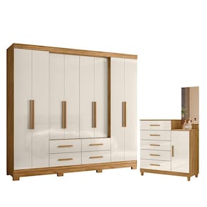 Guarda Roupa Casal San Lorenzo e Cômoda Lisboa Freijó Off White – Moval