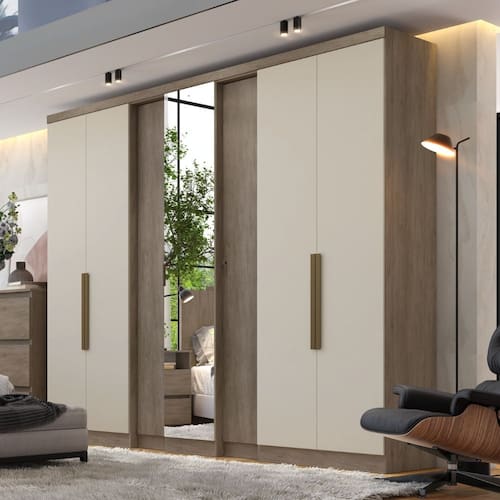 Características: 2 Cabideiros e nichos organizadores 4 Gavetas internas 7 Portas Amplo espelho frontal Design elegante e sofisticado Estrutura em MDP de alta resistência Puxadores metálicos modernos