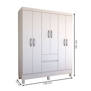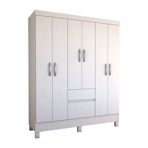 O(a) Guarda-Roupa Casal Senna 6 Portas 2 Gavetas Branco - Loja é produzido em MDP na escala de brilho Brilho e Fosca com Textura, e possui um grau de dificuldade de montagem: Difícil.