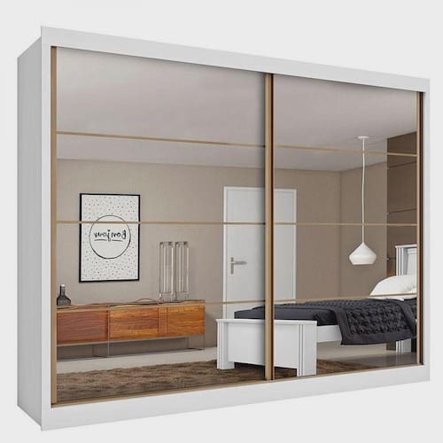 Guarda-Roupa Casal Sevilha 2 Portas com Espelho e 6 Gavetas Made Marcs- Com o Guarda-Roupa Sevilha, seu quarto ficará mais bonito e organizado! Produzido com chapas 100% Mdf, com costas parafusadas para dar maior durabilidade. Possui 2 portas de correr com espelho em simples abertura com trilho inferior de alumínio, roldana regulável com mola anti-descarrilhamento, perfil/puxador na cor Bronze, 8 peças de espelho de medidas: 1053x544mm; 6 gavetas com corrediças telescópicas que permitem deslizar suave, abertura total e maior suporte de peso (até 5kg), 10 prateleiras (suportam até 5kg) duas das prateleiras são removíveis para melhor adaptação do espaço conforme sua necessidade garantido melhor aproveitamento interno e 4 cabideiros em alumínio. Para afirmar a excelência do produto, as embalagens seguem as normas da Abnt, utilizando caixas em papelão reforçado, as peças são separadas com isomanta, os topos das caixas possuem reforço para evitar danos as quinas e o fechamento da caixa com fita de arquear e plástico termicolhivel. Utilizamos material ecologicamente correto. Este produto conta ainda com pintura verniz Uv que da um lindo acabamento. é ideal para complementar a decoração de seu dormitório. Imagem meramente ilustrativa. Produto refere-se somente ao Guarda-Roupa Casal Sevilha 2 Portas com Espelho e 6 Gavetas Made Marcs