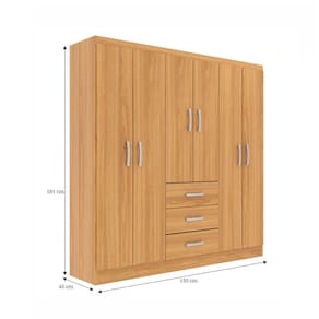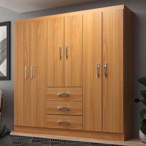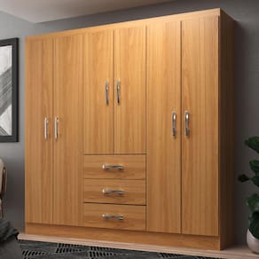 Modelo: Sevilha Material: MDP Cor: Cinamomo Material do puxador: Plástico Tamanho: Casal Acabamento: Laka Dobradiça: Alumínio Corrediça: Plástico Tipo de porta: Correr Escala de brilho: Fosco Quantidade de Prateleiras: 3 Quantidade de cabideiros: 2 Quantidade de portas: 6 Quantidade de Gavetas: 3 Quantidade de Puxadores: 9 Peso máximo suportado por gaveta: 10Kg Peso máximo suportado por prateleira: 10Kg Complexibilidade de montagem: Média Sistema de montagem: Parafusos e cavilhas Quantidade de volumes: 2