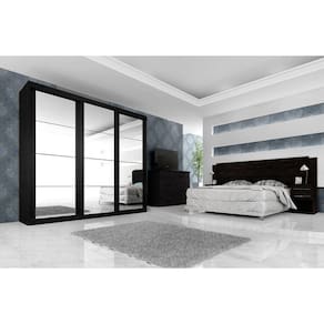 Guarda Roupa Sevilha | Roupeiro com 3 portas de correr com trilho em alumínio e sistema soft de rolagem que garante um melhor deslize, possui 6 gavetas internas com corrediças metálicas. As portas possuem encabeçamento com moldura de 25mm e assim garantem o não empenamento das mesmas. Feito totalmente em MDP de 15mm. Possui acabamento Touch Alto-Relevo ou Alto Brilho UV e Semibrilho parte interna. Esse é o Guarda Roupa mais procurado para quarto de casal. Tem um design compacto que ao mesmo tempo atende muito bem as reais necessidades de uma ou duas pessoas por ter o sistema ELE ELA, ou seja, ambos lados do Guarda Roupa são idênticos facilitando a divisão de espaço para duas pessoas. Possui dois porta joias no meio e uma composição de espelhos na porta central que deixam o produto glamouroso, este sim é o seu maior diferencial. Além desses detalhes é de fácil montagem.