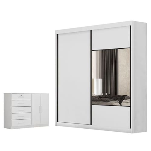 Guarda Roupa Casal Sienna com Espelho e Cômoda Seul Neve - Novo Horizonte