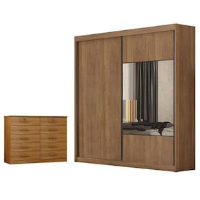 Guarda Roupa Casal Sienna com Espelho e Gaveteiro Milão com Chave Cumaru 23 - Horizonte