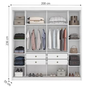 Guarda Roupa Casal Sienna 2 Portas 4 Gavetas Neve com Espelho Novo Horizonte