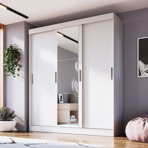 Guarda-Roupa Casal Solano 3 Portas 2 Gavetas com Espelho Branco - Pnr Móveis