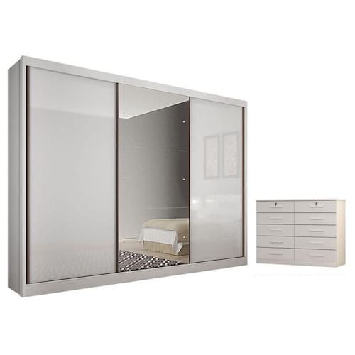 Guarda Roupa Casal Sonetto com Espelho e Gaveteiro Milão com Chave Neve - Novo Horizonte