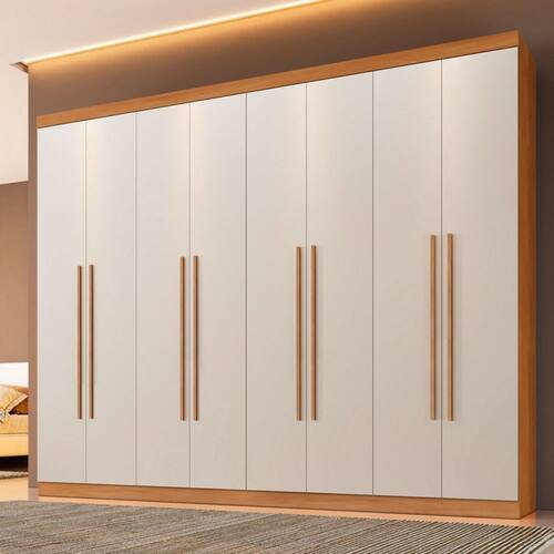 O(a) Guarda-Roupa Casal Taurus 8 Portas 4 Gavetas Cinamomo/Off White - Pnr Móveis é produzido em MDP na escala de brilho Fosco, e possui um grau de dificuldade de montagem: Médio.