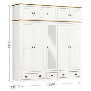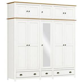 O Guarda-Roupa Casal Topázio 10 Portas e 3 Gavetas com Espelho da Finestra Móveis combina elegância, resistência e funcionalidade em um só móvel. Fabricado com estrutura em madeira maciça de pinus de reflorestamento, recebe acabamento refinado com pintura acetinada em verniz PU e UV, garantindo durabilidade e beleza por muito mais tempo. Com 10 portas, sendo a central com espelho, oferece amplo espaço para organização. As dobradiças com amortecimento proporcionam mais conforto e segurança no uso diário. Conta ainda com prateleiras em madeira maciça que suportam até 10kg distribuídos, 3 gavetas com corrediças telescópicas para um deslizamento suave e cabideiros em alumínio com capacidade de até 8kg. Os puxadores metálicos em ouro envelhecido e os pés alongados em madeira maciça conferem um visual sofisticado e atemporal. Ideal para quem busca um guarda-roupa espaçoso, funcional e com design de alto padrão para o quarto do casal.