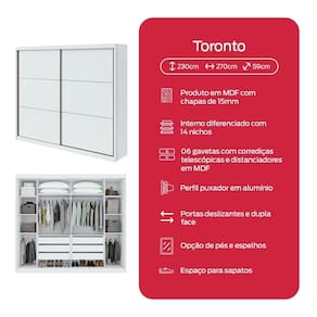 O principal destaque desse roupeiro casal é a combinação de espaço interno, beleza e funcionalidade. Ele vem com 10 prateleiras, para deixar tudo no lugar. Para quem tem o hábito e a necessidade de usar cabides, o Toronto é sensacional, pois ele possui boa profundidade. Além disso, vem com 10 prateleiras, para deixar tudo no lugar!