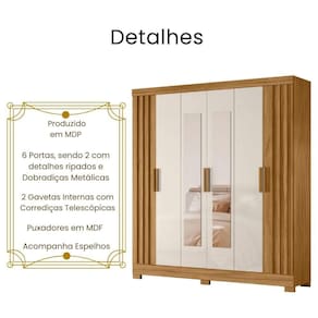 Guarda Roupa Casal Valença Com Espelho 6 Portas Moval
