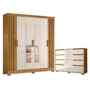 Guarda Roupa Casal Valença com Espelho e Cômoda Georgia Freijó Off White – Moval