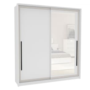 O(a) Guarda-Roupa Casal Valência 2 Portas 2 Gavetas com Espelho Branco - Politorno é produzido em MDF e MDP na escala de brilho Semi-Fosco, e possui um grau de dificuldade de montagem: Médio.