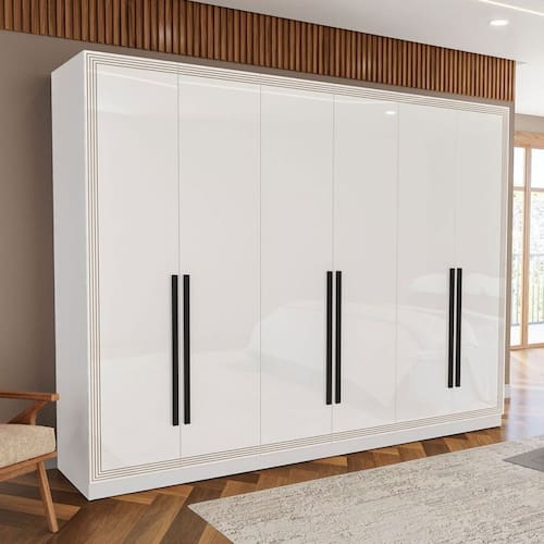 Guarda-Roupa Casal Valência 6 Portas 4 Gavetas Branco - Politorno