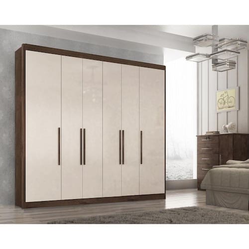 Guarda Roupa Valência | Roupeiro com 6 portas de abrir e dobradiças metálicas, possui 6 gavetas internas com corrediças metálicas. Puxadores com ponteiras cromadas 480mm, feito em MDP de 15mm (parte externa, portas) e 12mm (prateleiras, laterais de gaveta, interno). Possui acabamento Touch Alto-Relevo ou Alto Brilho UV e Semibrilho parte interna. Esse é o Guarda Roupa mais procurado para quarto de solteiro e casal. Tem um design compacto que ao mesmo tempo atende muito bem as reais necessidades de uma ou duas pessoas por ter o sistema ELE ELA, ou seja, ambos lados do Guarda Roupa são idênticos facilitando a divisão de espaço para duas pessoas. Além desses detalhes possui uma fácil montagem.
