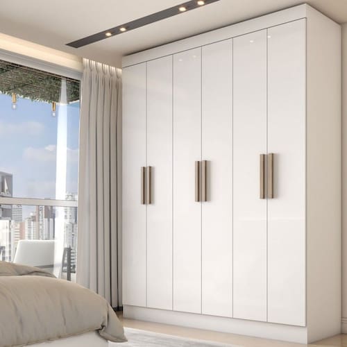 O(a) Guarda-Roupa Casal Valparaíso 6 Portas 2 Gavetas Branco - Loja é produzido em MDP na escala de brilho Brilhante, e possui um grau de dificuldade de montagem: Médio.