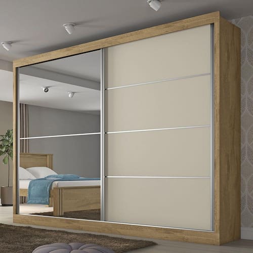 O(a) Guarda-Roupa Casal Verona 2 Portas 4 Gavetas Espelhado Amendoa/Off White - Mademarques é produzido em MDF na escala de brilho Semi-Brilho, e possui um grau de dificuldade de montagem: Médio.