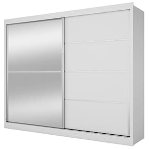 O(a) Guarda-Roupa Casal Verona 2 Portas 4 Gavetas Espelhado Branco - Mademarques é produzido em MDF na escala de brilho Semi-Brilho, e possui um grau de dificuldade de montagem: Médio.