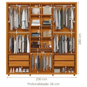 O Guarda Roupa Casal Veronese combina funcionalidade e sofisticação, sendo perfeito para deixar seu ambiente mais elegante! Estrutura 100% MDF 15/25 mm e acabamento em pintura UV. Possui portas com dobradiças metálicas (acompanha espelhos nas portas laterais), amortecimento e puxadores estilo cava, gavetas internas com corrediças telescópicas e conta também com amplos nichos e prateleiras internas, além de possuir cabideiros internos (sendo os dois superiores extensíveis). NÃO ACOMPANHA OBJETOS NEM DEMAIS DECORAÇÕES. Este produto será entregue em 8 volumes.