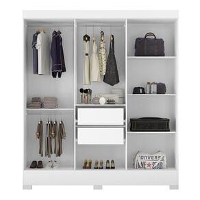 O Guarda Roupa Verso se destaca pela configuração interna, oferecendo excelente distribuição com duas gavetas e diversas possibilidades para utilização das prateleiras e três cabideiros metálicos para roupas longas. Acompanha pés em PVC de série, que facilitam a limpeza do ambiente. O móvel é confeccionado em MDP de alto padrão e possui acabamento resistente, proporcionado por sua pintura UV.
