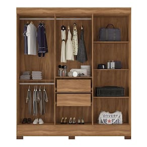 O Guarda Roupa Verso se destaca pela configuração interna, oferecendo excelente distribuição com duas gavetas e diversas possibilidades para utilização das prateleiras e três cabideiros metálicos para roupas longas. Acompanha pés em PVC de série, que facilitam a limpeza do ambiente. O móvel é confeccionado em MDP de alto padrão e possui acabamento resistente, proporcionado por sua pintura UV.