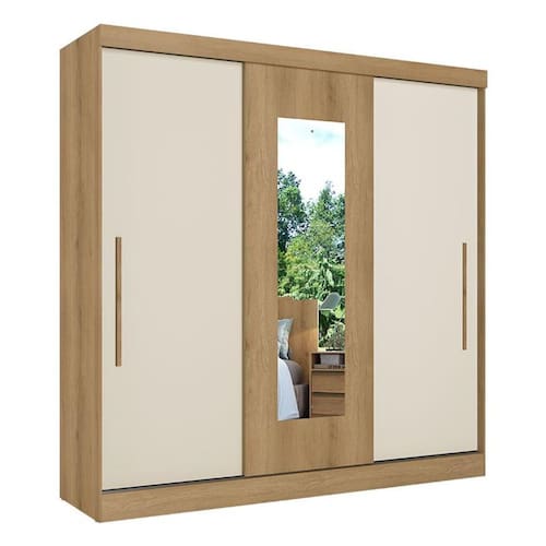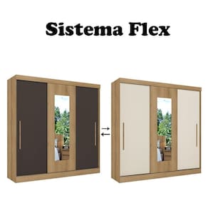 Guarda Roupa Casal Vision Glass 3 Portas Capuccino Cacau Off White Flex Acetinado - THB