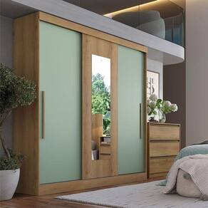 Guarda Roupa Casal Vision Glass 3 Portas Capuccino Menta Acetinado - THB