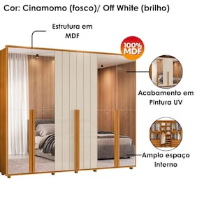 O Guarda Roupa Casal Volpi trás estilo e praticidade para seu ambiente e dia a dia! Estrutura 100% MDF 15/25 mm e acabamento em pintura UV. Possui portas com dobradiças metálicas, amortecimento e puxadores estilo cava (acompanha espelhos nas 4 portas laterais, montagem por escolha do cliente), além do ripado angular (alto relevo). Conta também com gavetas de corrediças telescópicas, amplos nichos para armazenamento cabideiros internos (sendo os superiores extensível com pistão a gás) e destaque para a sapateira interna deslizante, equipada com corrediças telescópicas para facilitar a organização. NÃO ACOMPANHA OBJETOS NEM DEMAIS DECORAÇÕES. Este produto será entregue em 10 volumes.