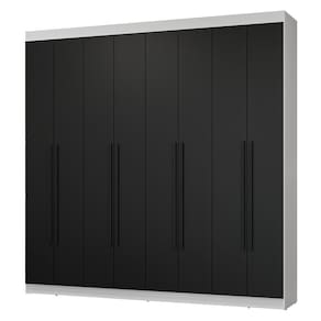 Possui uma pintura de alta resistência, que garante durabilidade e um acabamento impecável por muito mais tempo. A estrutura é na cor Branca, as portas e puxadores em Preto, criando um visual sofisticado que se adapta a qualquer estilo de decoração. Os puxadores de 80 cm, fabricados em MDF, são um dos grandes diferenciais, trazendo um design alongado e moderno.