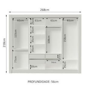- Itens Inclusos: 4 Cabideiros; 4 Gavetas Internas; 8 Prateleiras; 4 Portas de Correr de Madeira com Sistema Anti-Descarrilhamento